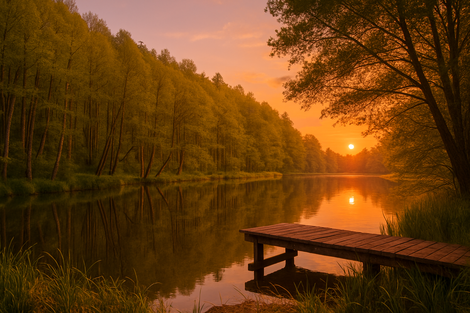 Nasz pomost to idealne miejsce, by zakończyć dzień – z herbatą, lampką wina albo po prostu w ciszy, wsłuchując się w szum wody i podziwiając malownicze zachody słońca.