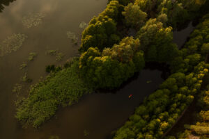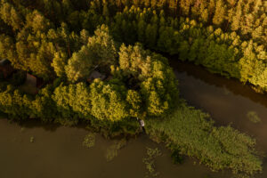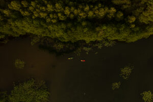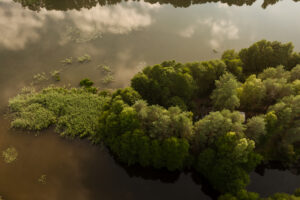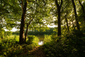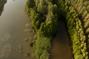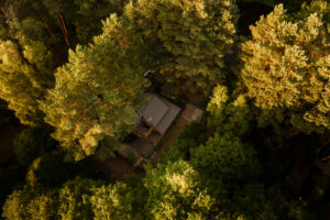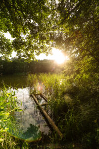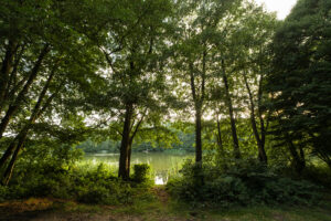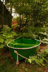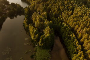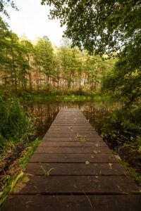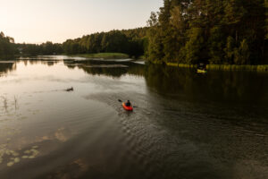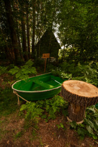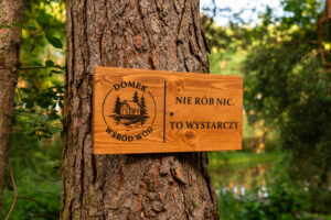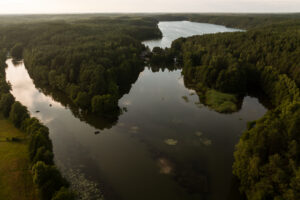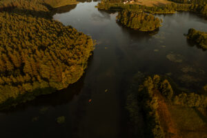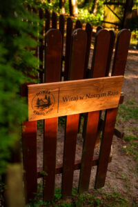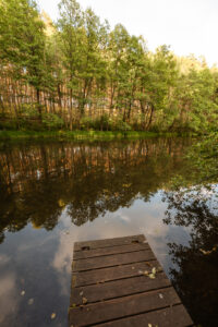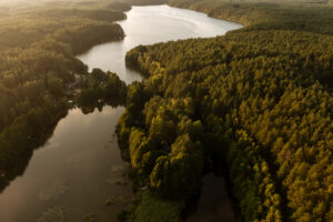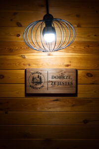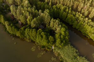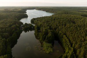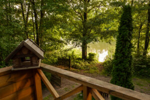 Położony tuż nad brzegiem jeziora, otoczony naturą i spokojem.