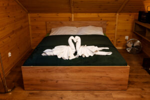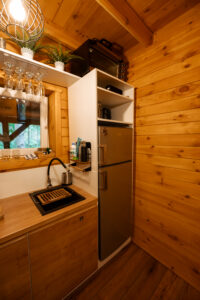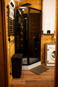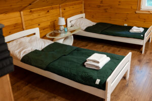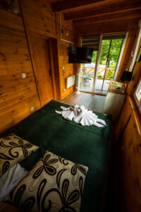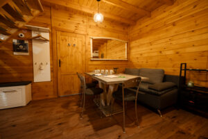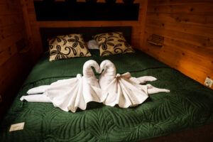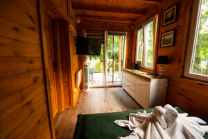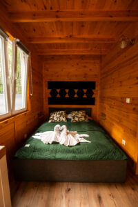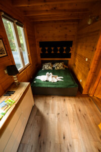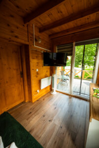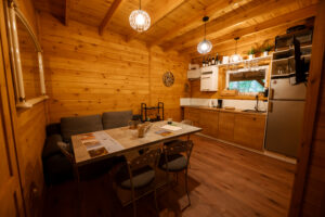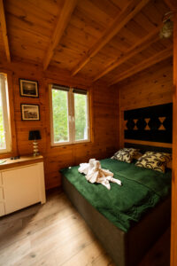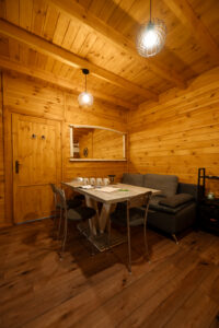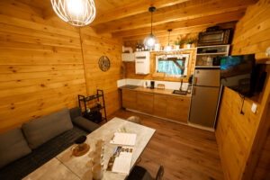 Wygodny, w pełni wyposażony domek z dwiema sypialniami, łazienką, przestronnym salonem i funkcjonalną kuchnią – wszystko, czego potrzebujesz, by czuć się jak w domu.